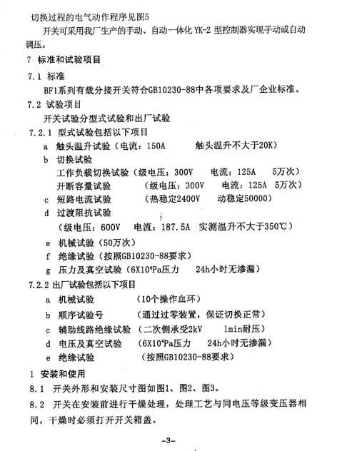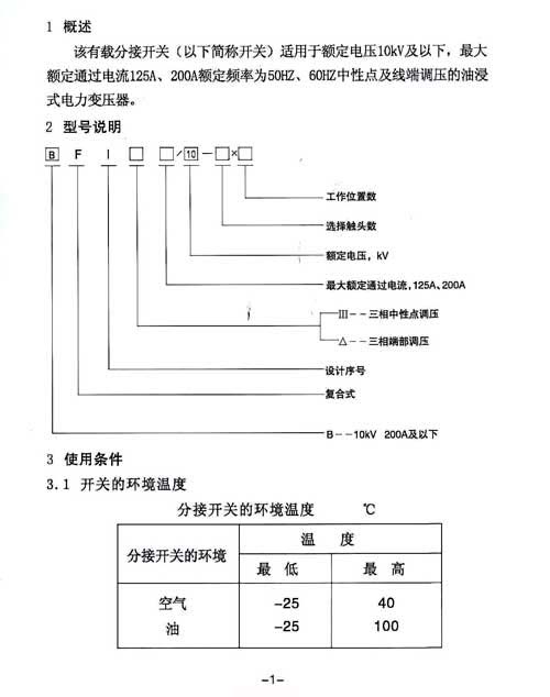 BF1系列有载分接开关使用说明书